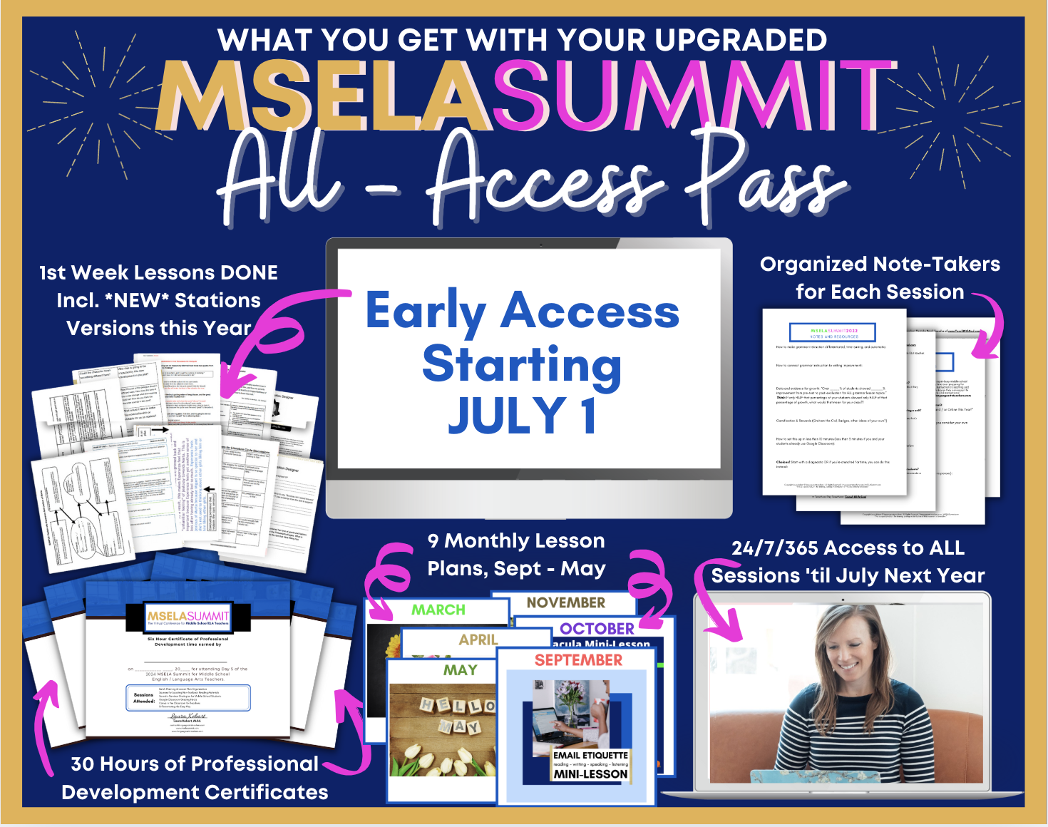Get your free ticket to the MSELA Summit which is the annual back-to-school virtual conference specifically designed for Middle School ELA Teachers.