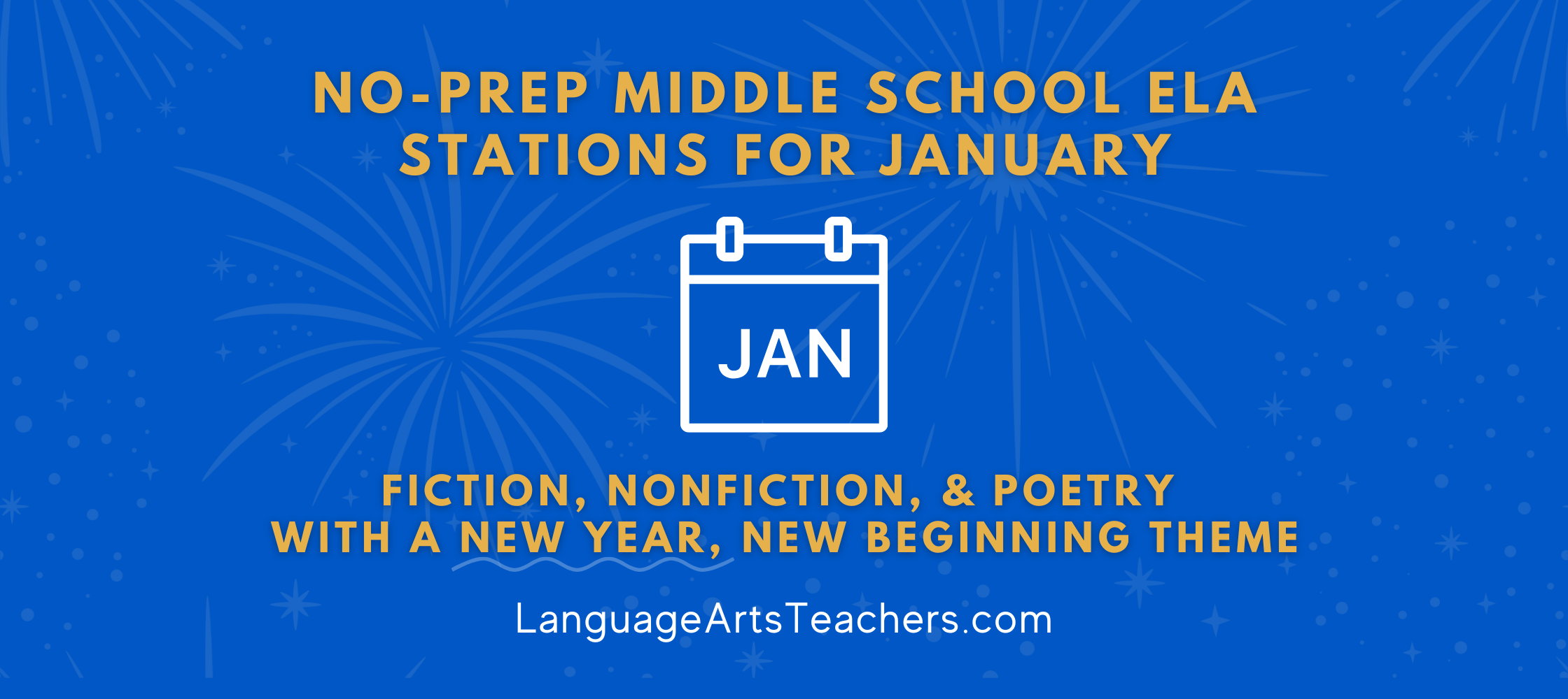 No-Prep Middle School ELA Stations for Jan: Fiction, Nonfiction & Poetry with a New Year, New Beginning Theme