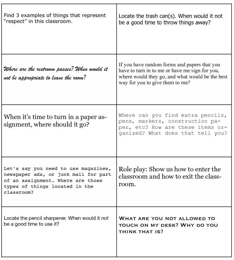 Students use a guided scavenger hunt to dig into your classroom expectations—everything from quotes or anchor charts on the walls, to making inferences about what they can / cannot touch or access, to where to find things in the class. It’s a “let’s go over the classroom rules” but in a movement and thinking kind of way that’ll stick