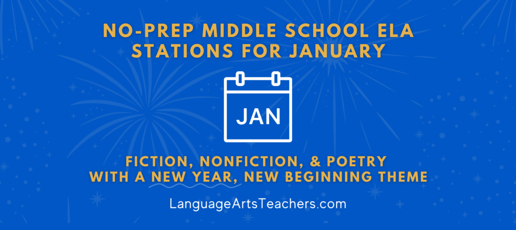 Get the entire collection of monthly middle school stations when you join Ready, Set, Stations —> Each month’s set includes a fiction, nonfiction, poetry collection so that all the activities (reading, writing, vocabulary, grammar) go together thematically!