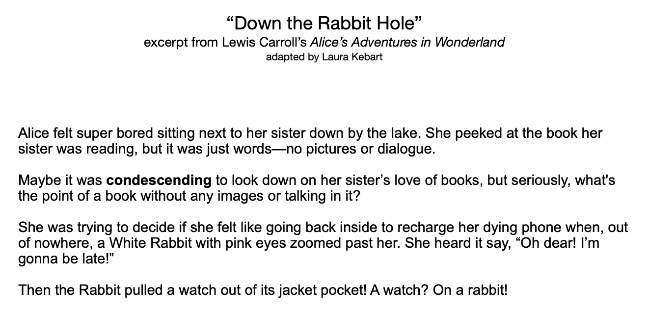 - Compare and contrast Alice’s feelings about her sister’s book with her feelings about the world she enters through the rabbit hole.