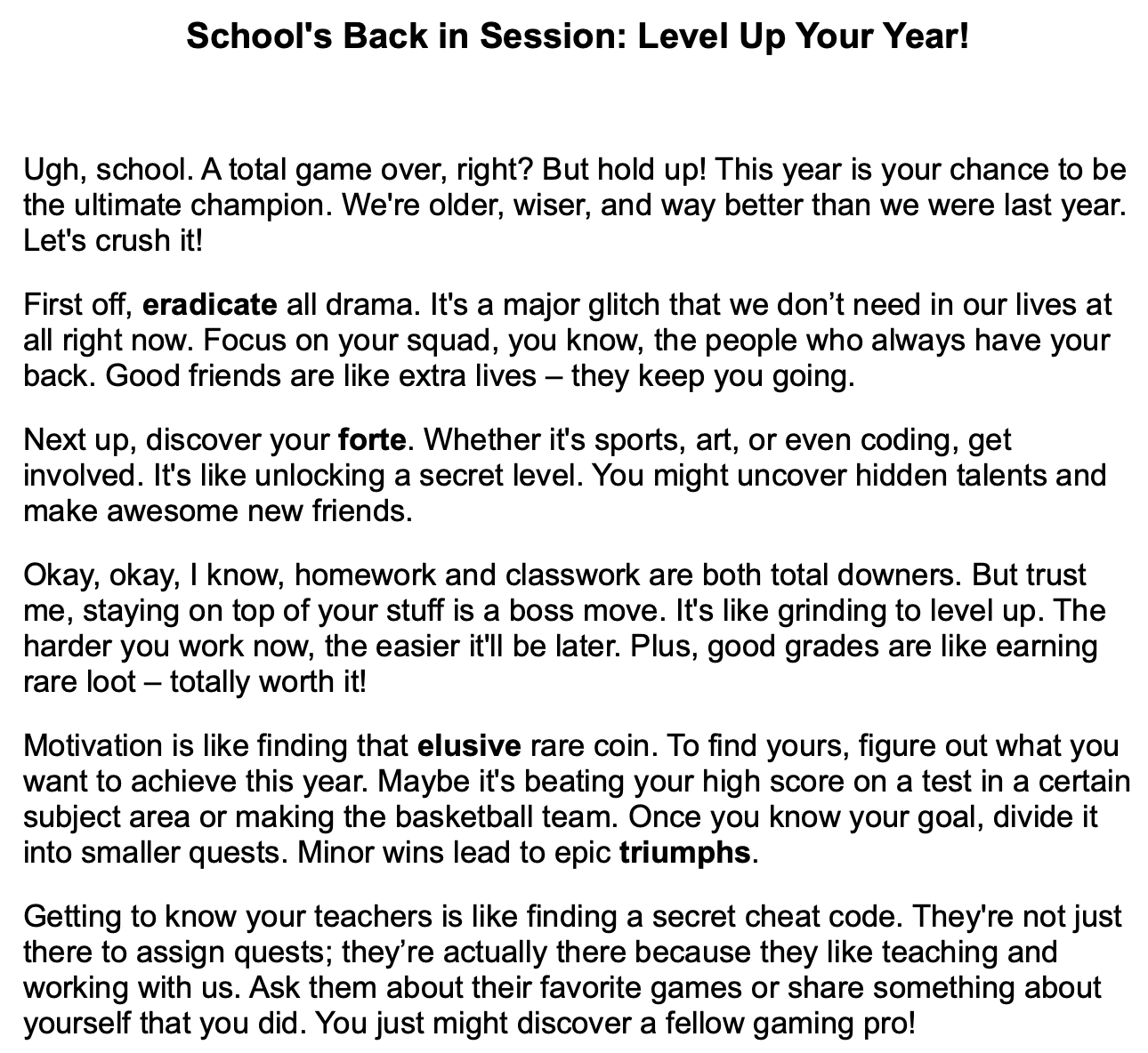 I love to write, and I have so many students in class each year who LOVE gaming (so does my husband, ha!). To grab their interest right away, I wrote a short passage last year from the point-of-view of a “gaming student” who gives advice about how to “level up” your school year using all the typical gaming language… But I kept it low-key as well since not literally every student is a gamer, and I didn’t want to get too carried away by including extra-elusive gaming terminology.